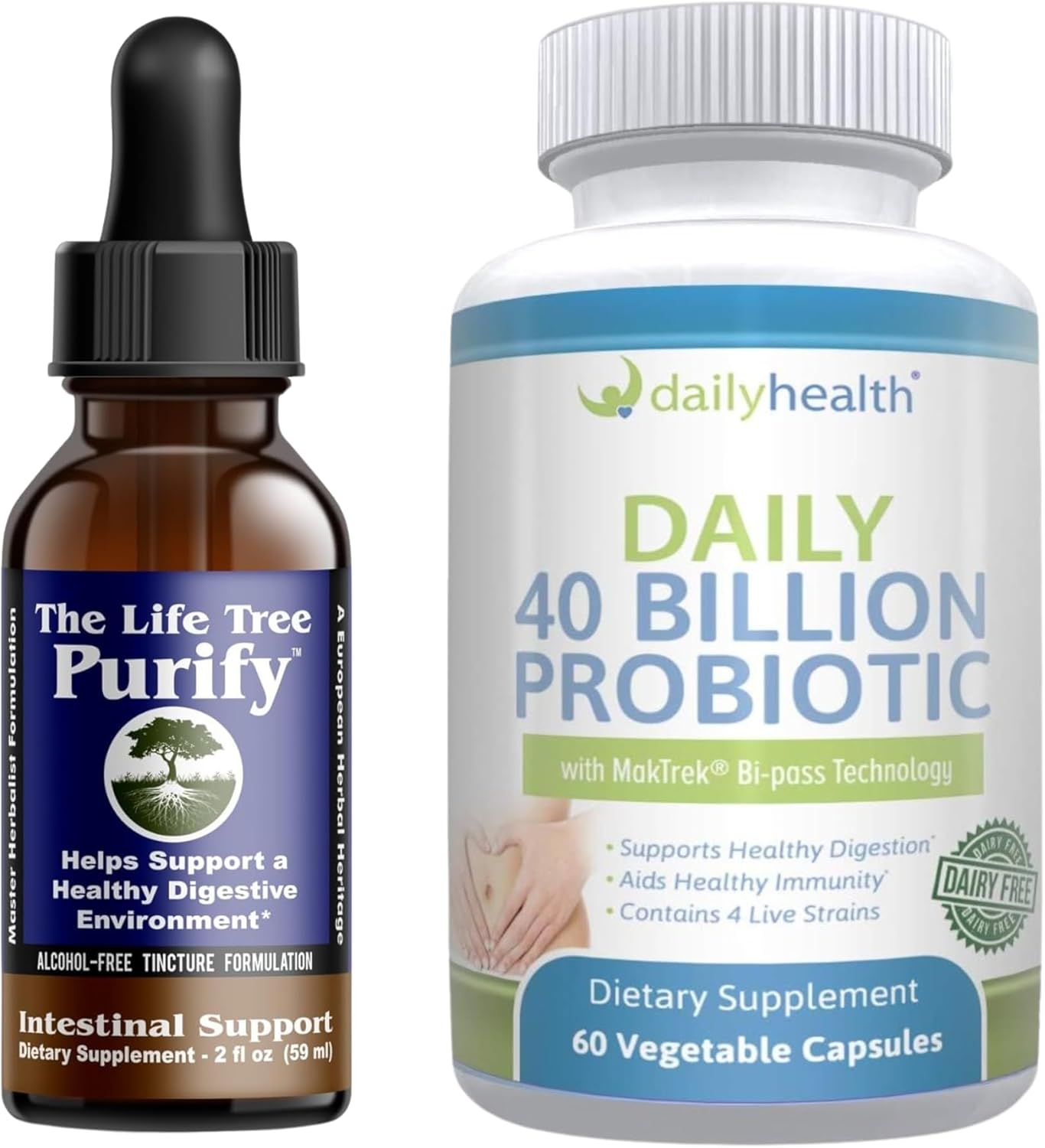PURIFY INTESTINAL SUPPORT – take 60 drops once a day . Drink at least 8-10 glasses of daily.